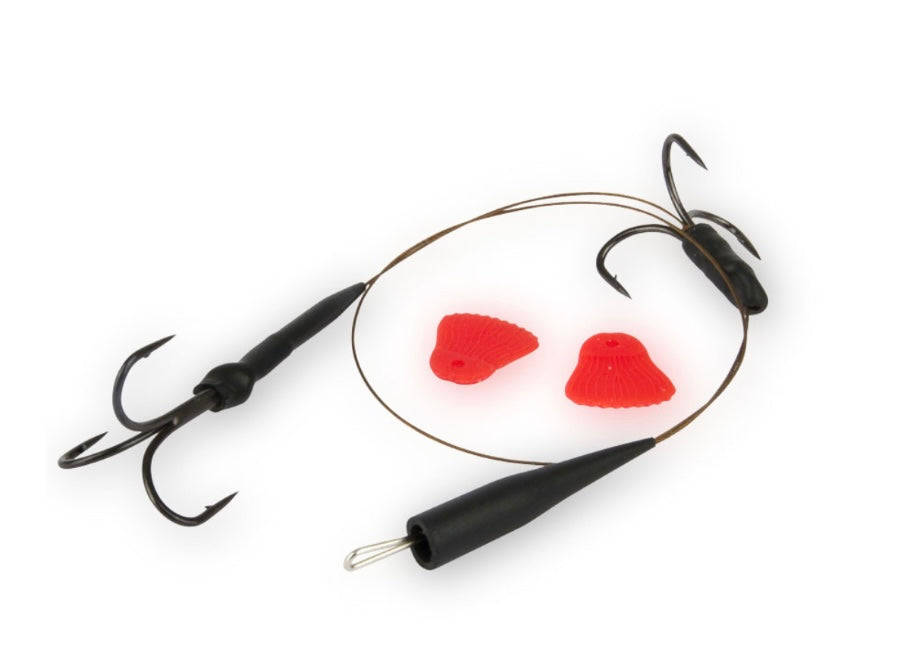 When paternosting baits much shorter traces are required. Our Quick Change Paternoster Traces have been designed to be used in conjunction with our Heli Rotary Uptrace and provide a safe way to target predators whilst paternostering. They are all available in twin treble variants.